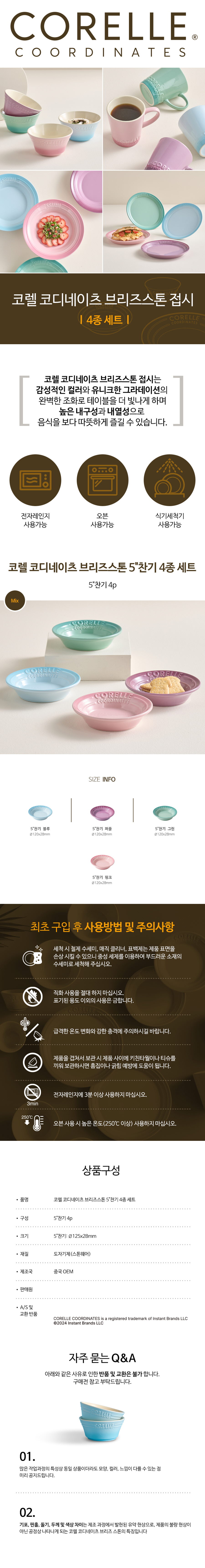 ÄÚ·¼ ÄÚµð³×ÀÌÃ÷ ºê¸®Áî½ºÅæ 5ÀÎÄ¡ Âù±â 4Á¾ ¼¼Æ® R