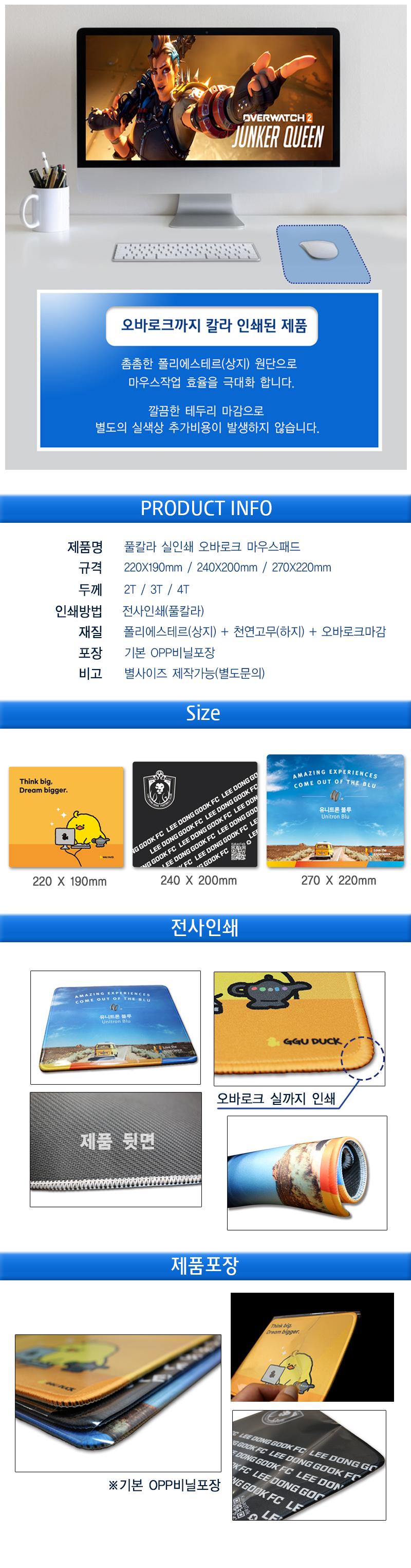 ±Ô°Ý/»çÀÌÁî 220*190*2T/3T/4T »ö »ó OEM Ä®¶ó´ë·Î Àμâ
