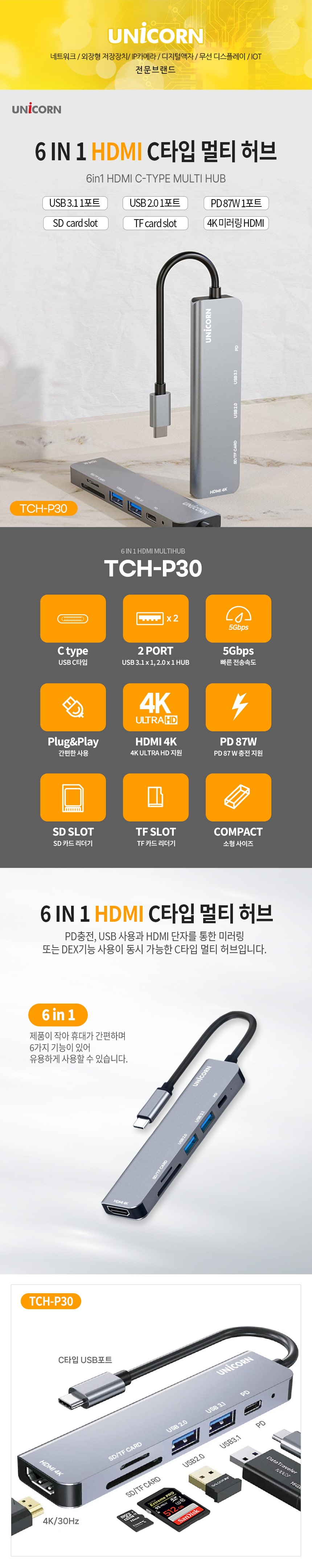 À¯´ÏÄÜ CŸÀÔ 6in1 ¸ÖƼ Çãºê PD 87W TCH-P30
