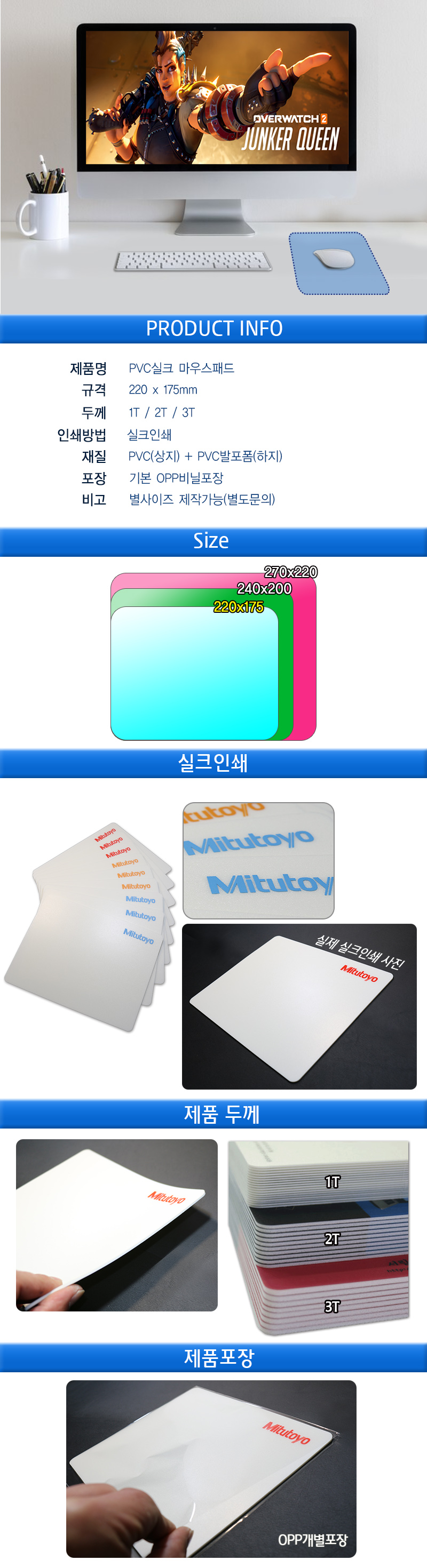 ±Ô°Ý/»çÀÌÁî 220*175*1T/2T/3T »ö »ó OEM Ä®¶ó´ë·Î Àμâ
