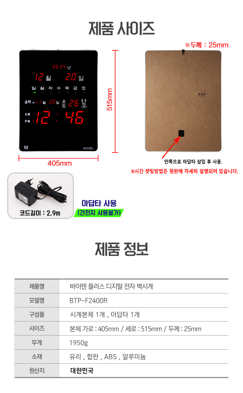 ÀüÆÄ¼ö½Å µðÁöÅÐ º®½Ã°è BTP-F2400R