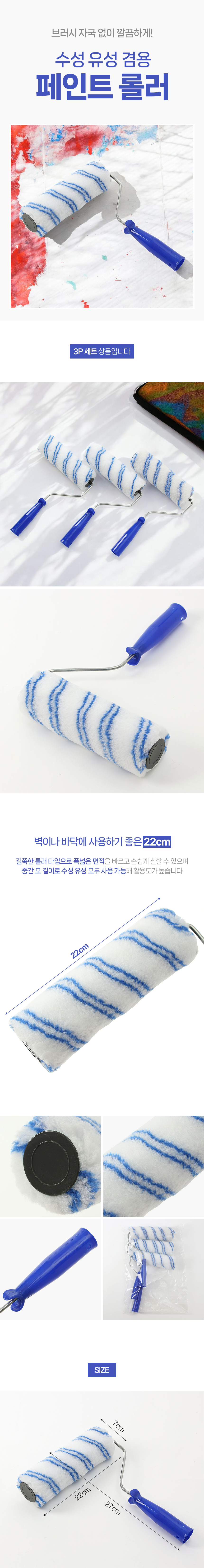 ¹«Áö°³Ç¥ ÆäÀÎÆ® ·Ñ·¯ 3p¼¼Æ®(22cm) (ºí·ç)