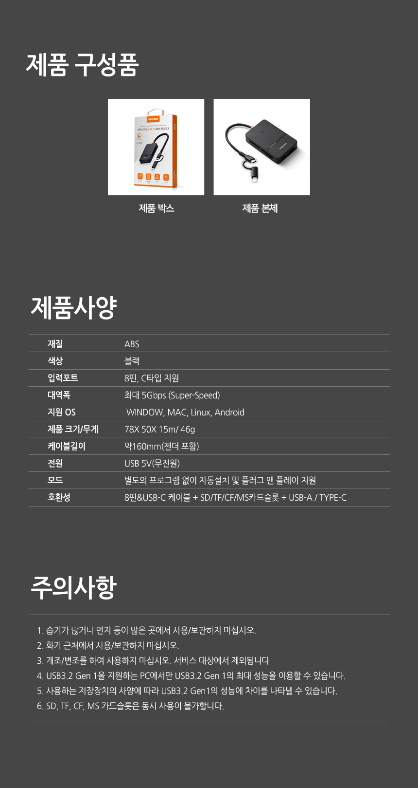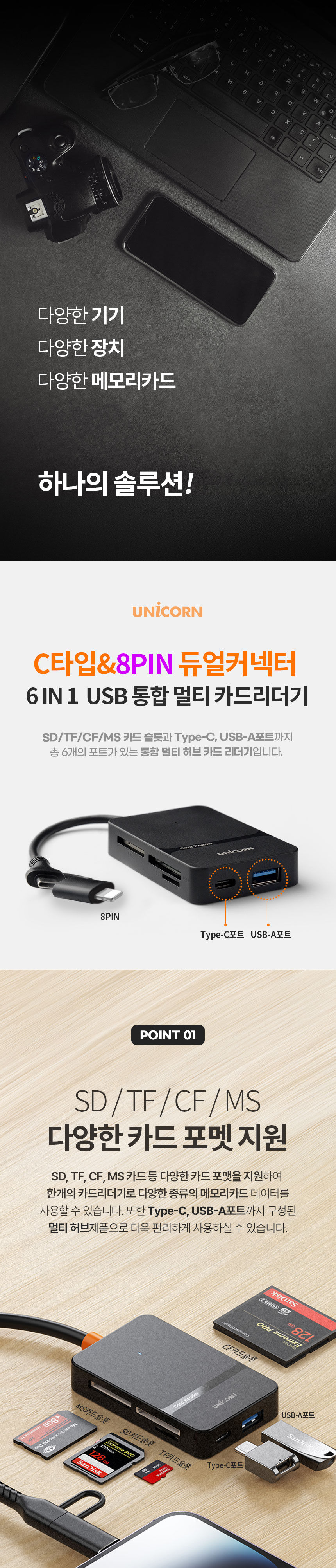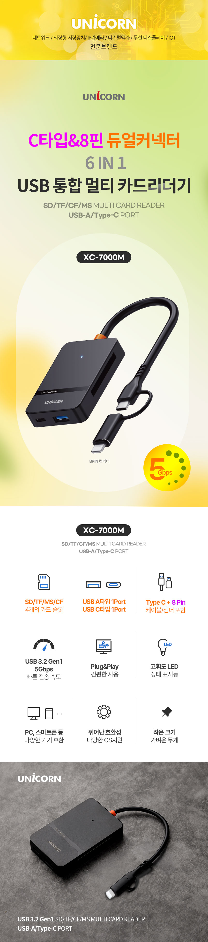 À¯´ÏÄÜ C+8ÇÉŸÀÔ USB3.2 Gen1 6in1 ¸ÖƼīµå¸®´õ±â XC-7000M